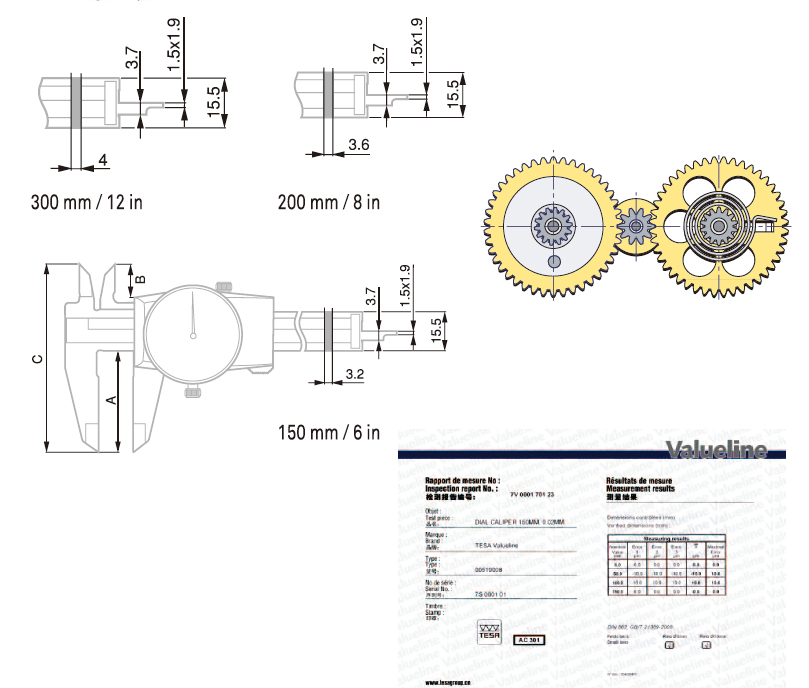 Thước cặp có dây đeo dễ đọc - Khung có đĩa phẳng bằng kim loại - Model có phạm vi 200 hoặc 300mm có bánh dẫn động.