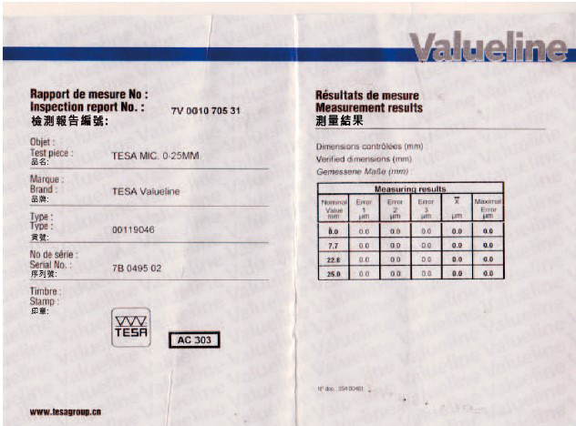 phù hợp với tiêu chuẩn: ISO3611/NG E11-095